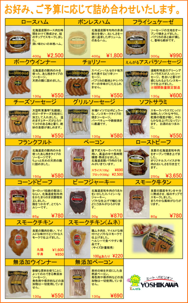良い素材を厳選し、ひとつひとつに真ごころを込めた、吉川の手づくりハム・ソーセージ。